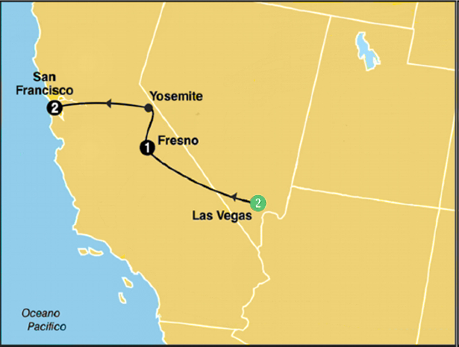 Saliendo desde Las Vegas, visitando Oakhurst, Yosemite y regresando a San Francisco. Salidas Lunes de Enero a Diciembre
